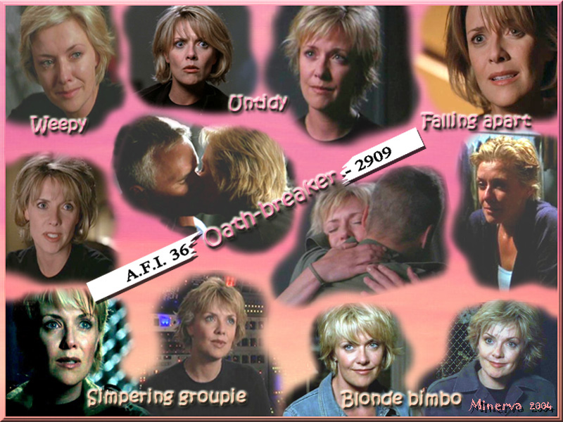 However, she could still occasionally manage to be the professional U.S.A.F. officer, even in Season 7 (see the bottom right pic.) but T.W.I.C. just don't seem to want her to come out and play very often these days. ::sigh:: They appear to care only for their male fantasy version... |