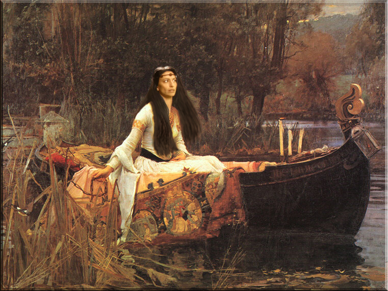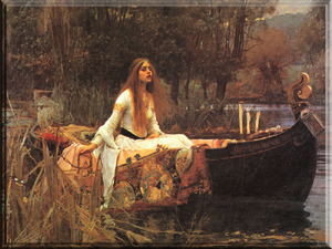The painting illustrates the poem of the same title by Alfred, Lord Tennyson, and depicts Elaine, the Fair Maid of Astolat of Arthurian legend, who fell in love with Sir Lancelot. Extract: In the stormy east-wind straining, The whole poem can be read here |